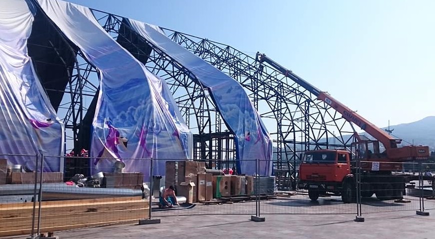 В частности, была разрушена часть набережной с клумбами, а также обустроен сток реагентов для сохранения льда на катке прямо в море.